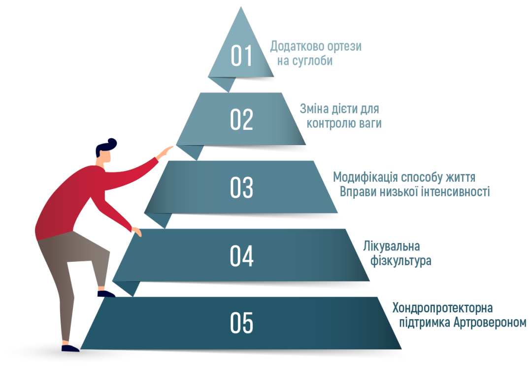 Остеоартрит – складне захворювання, яке вимагає комплексного підходу. Комбінація лікування може допомогти впоратися з симптомами та покращити якість життя. Синергічна дія артроверону більше ніж 2 хондропротекторів забезпечує захист від факторів запалення, які сприяють розвитку дегенеративного захворювання.
